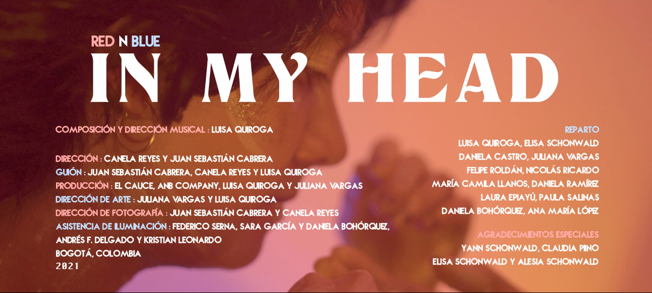 “In My Head is the debut single and first music video by REDNBLUE, the new solo project of Luisa Quiroga—a visual artist and multi-instrumentalist who has been part of audiovisual and musical projects such as Arrabalero and MOÜGLI, with whom she has performed at major festivals including Jazz al Parque and Festival Estéreo Picnic.”